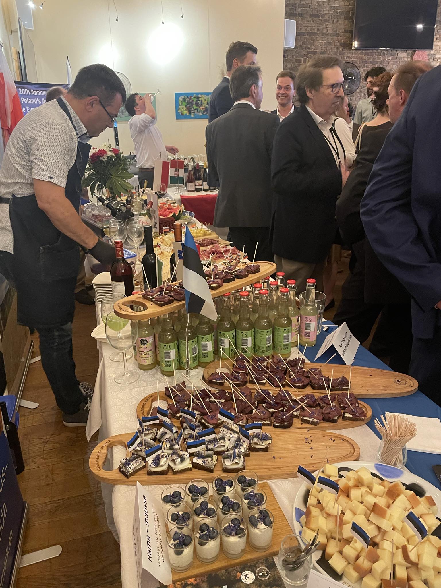 Meeleolukas õhtu oli täis maitseelamusi, meenutusi ja viktoriini põnevate küsimustega kõikide riikide kohta. Iga riik kattis oma laua. Eesti laual pakkusime meie toidukultuuri pärle: Eesti Pagari musta leiba Saaremaa Piimatööstuse võiga, katteks kas Linnamäe Lihatööstuse külmsuitsu põdrasink või DGM Shippingu „Briisi“ vürtsikilu. Maitsta sai veel Saaremaa Piimatööstuse Kadakajuustu, Minna Marmelaadi „Metsade maitseid“, Tartu Milli kamajahust kohapeal valmistatud kamavahtu. Joogipoolelt kujunes populaarseks Vinkymoni ebaküdoonia limonaadid, mis üllatasid värske ja vähemagusa maitsega. Loomulikult oli kaasas ka paljude jaoks tuntud ja oodatud liköör „Vana Tallinn“ ning viin „Moe Mahe 1886“, mis kannab Euroopas tuntud ja tunnustatud geograafilist päritolumärgist.