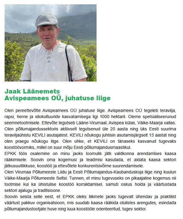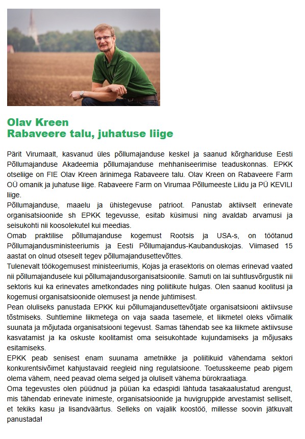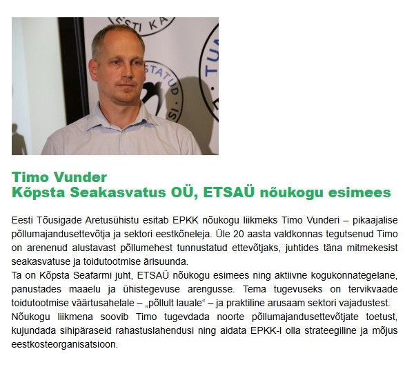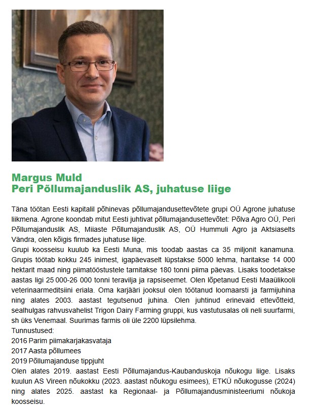 EPKK põllumajanduse grupi nõukogu kandidaadid