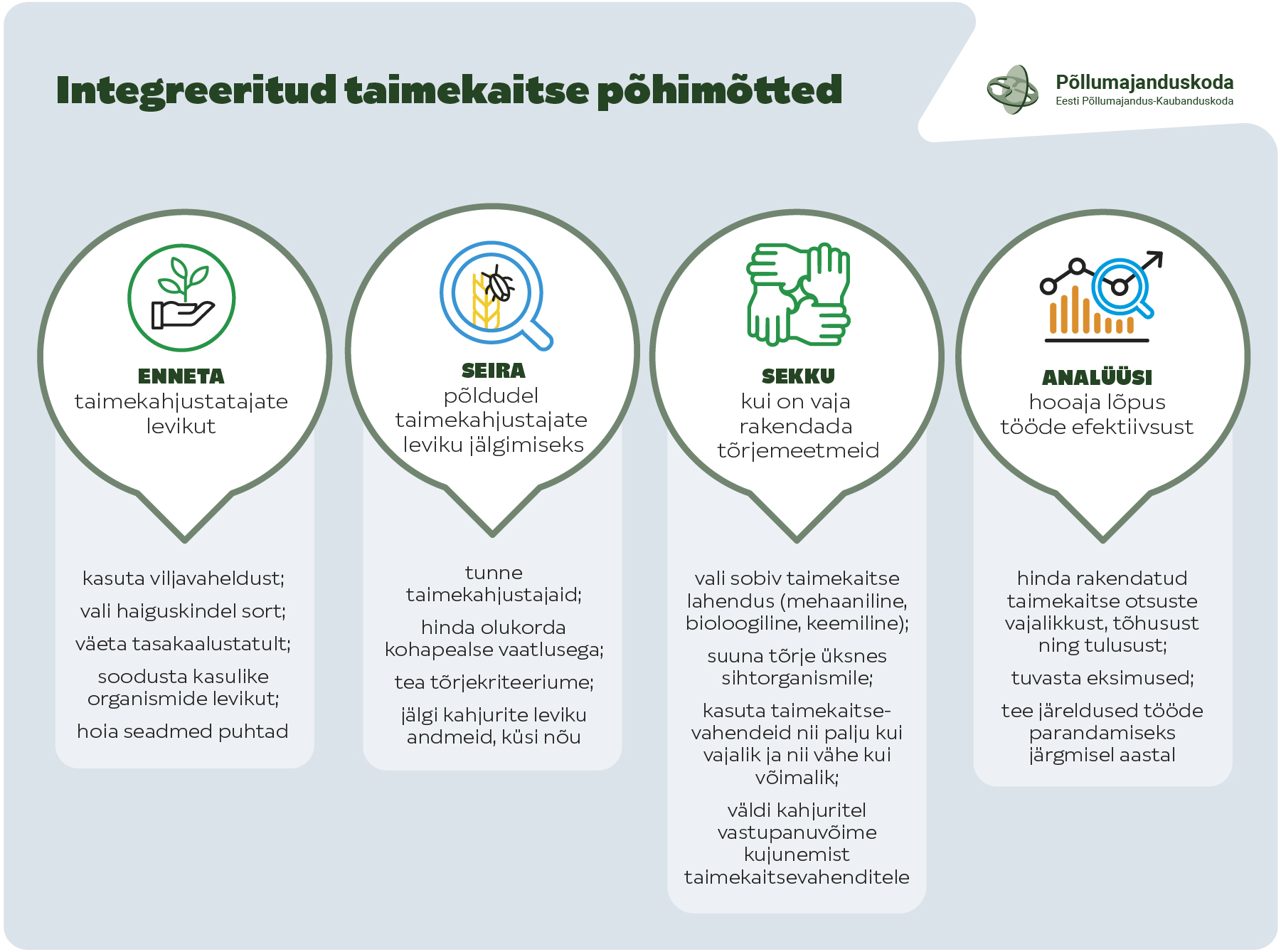 Integreeritud taimekaitse põhimõtete rakendamine on oluline tööriist keskkonna ja elurikkuse hoidmiseks ning rohepöörde ja talust taldrikule strateegiaga seotud eesmärkide saavutamiseks.