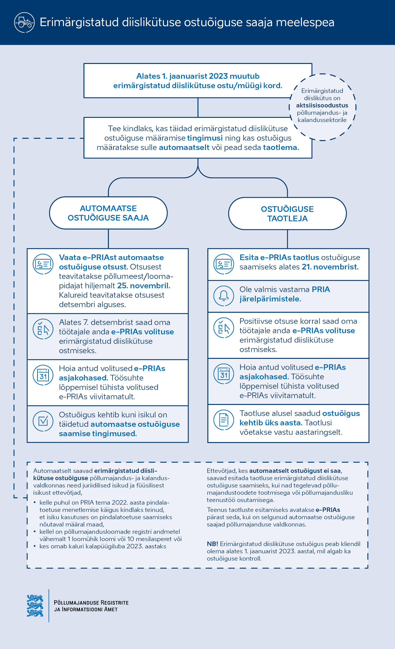 PRIA info erimärgistatud diislikütuse (EDK) ostuõiguse andmisest