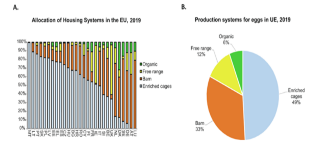 Euroopa Liidus toodetud kanamunadest pärines 2019. aastal täiustatud puuridest 49%, õrrekanadelt 33%, vabapidamiselt 12% ja mahemunad 6%.