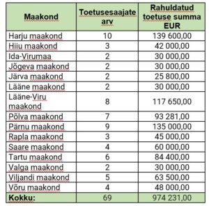13.-21. aprillil võttis PRIA vastu väikeste põllumajandusettevõtete arendamise toetuse taotlusi. Toetus määrati 69 ettevõttele summas 974 231 eurot.
